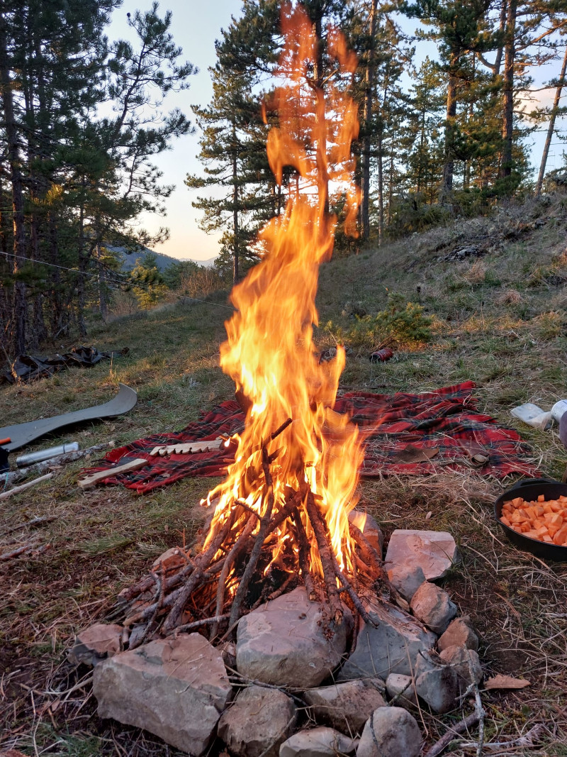 Se laisser enseigner par les plantes séchées qui avec nos deuils se consument dans le feu : les plantes sèches se transforment en flammes, en parfums et en fumée. Une manière de rendre au ciel leur chaleur et leur lumière accumulées pendant l’été. Le retour dans le cycle des transformations, l’alternance vie – mort – vie. La fin lumineuse de la vie matérielle de ces plantes. Et comment je participe de ce mouvement à travers le partage de ce rituel.