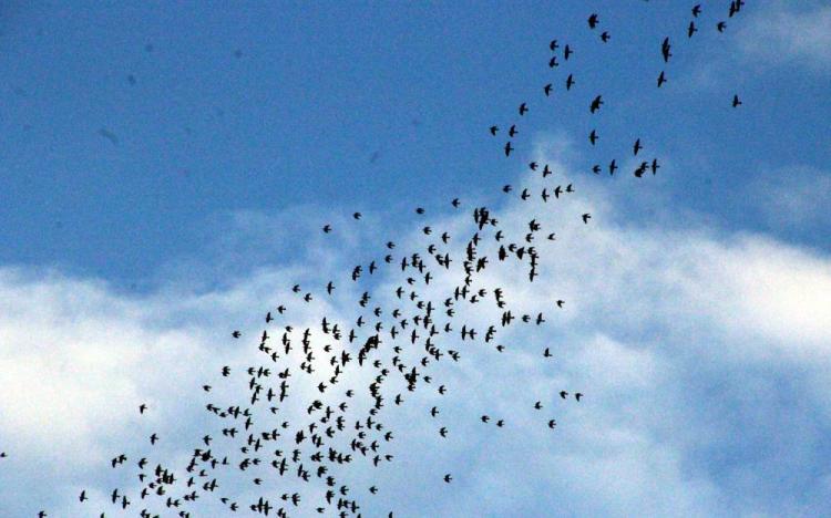 Autre lieu, autre enseignement : les palombes qui se rassemblent en nuées pour partir vers de nouveaux horizons.