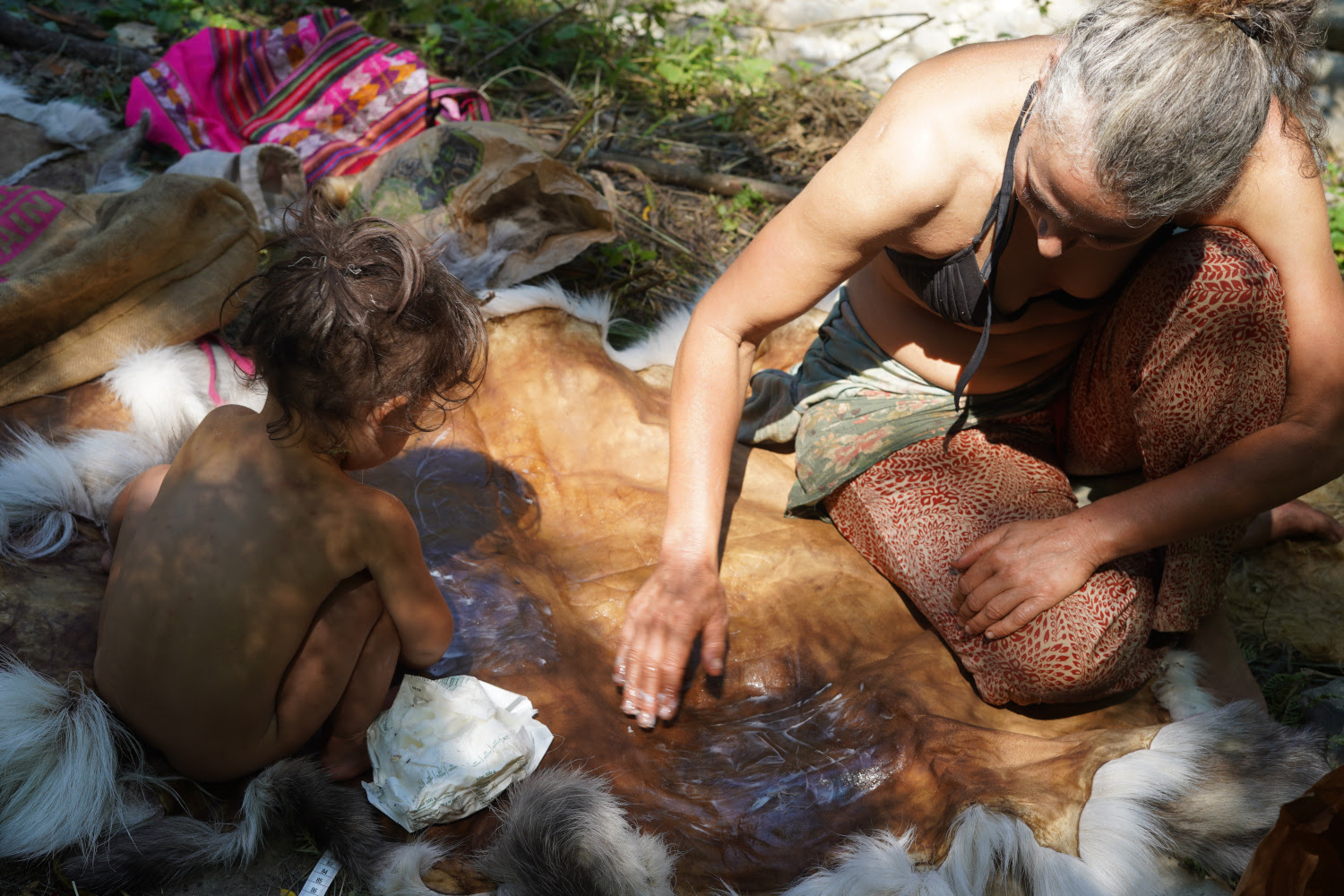 Il n’y a pas de corvées dans la vie tribale sauvage : tout est prétexte à émerveillement. Recueillir de la neige pour avoir de l’eau permet de se recueillir devant son scintillement. Chercher du bois est prétexte à une balade pour se réchauffer et s’offrir la beauté des paysages traversés. Tanner une peau est une rencontre sensuelle avec une multitude de textures et d’odeurs.